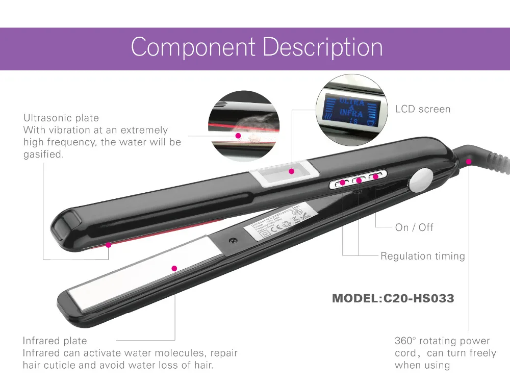 Ordered april 11, was at the post on may 8; the box was a little wrinkled, packed was good; the test with a drop of water passed, adjusted the power of ultrasound and infrared radiation separately) in the hand comfortably sits, the case is absolutely the same as happy hair, i did not see the difference. Works, beeps, does not warm, strands after it warm